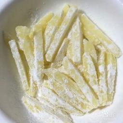 - 将土豆条分批放入油中,不要放太多,以免油温下降。